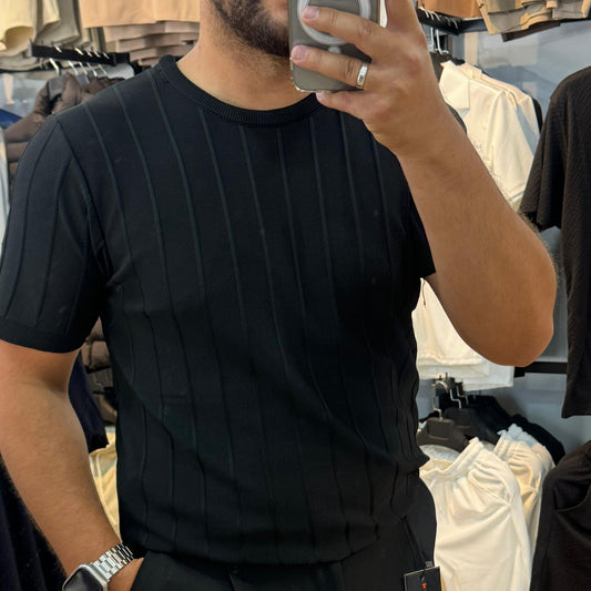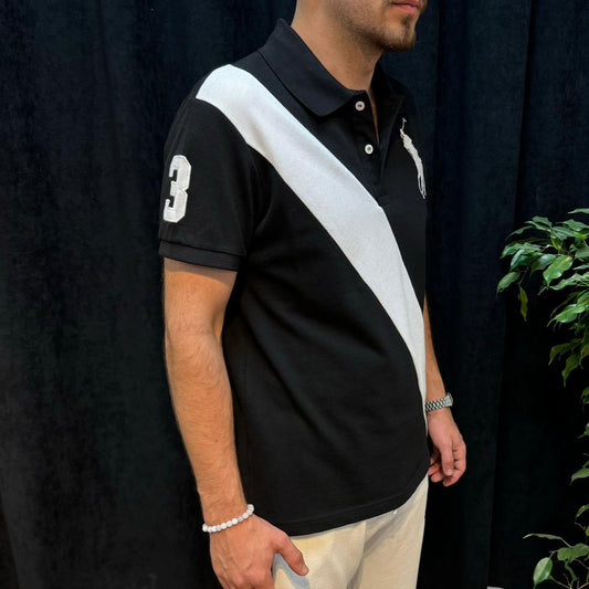 Polo Yaka Tişört Beyaz Detaylı Siyah