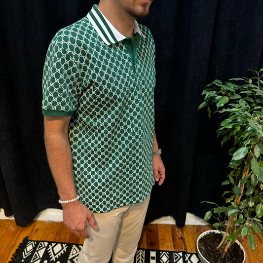 Polo Yaka Tişört Beyaz Detaylı Yeşil