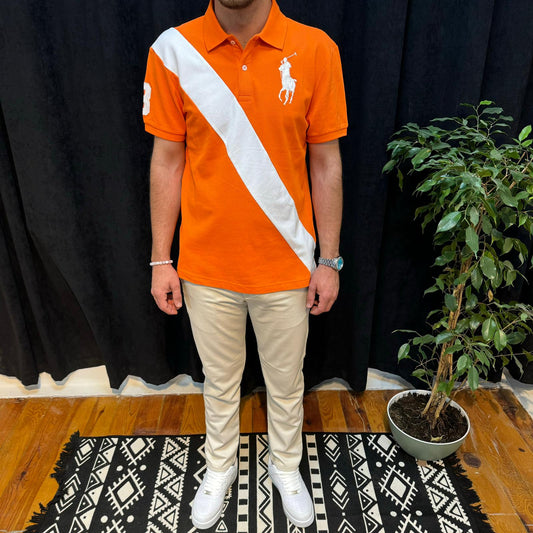 Polo Yaka Tişört Beyaz Detaylı Turuncu