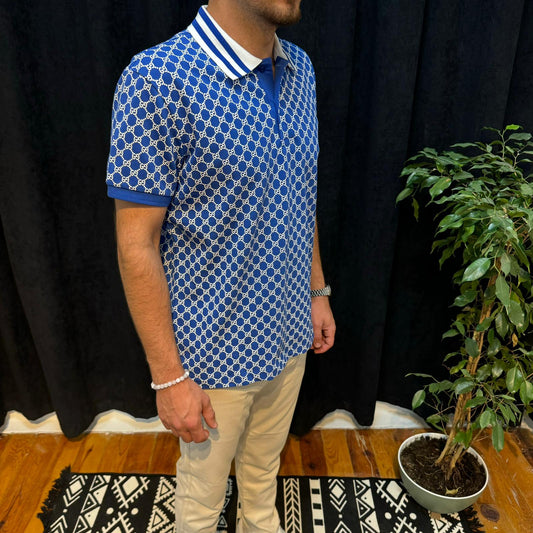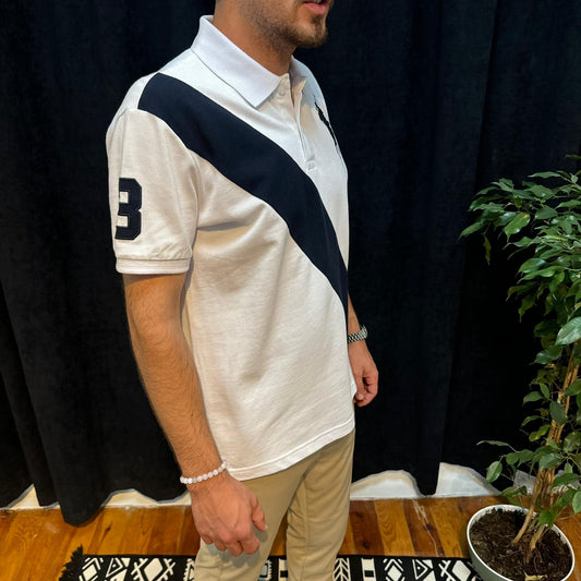 Polo Yaka Tişört Lacivert Detaylı Beyaz