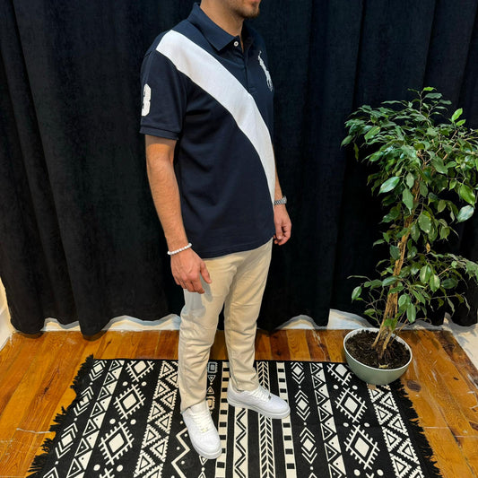 Polo Yaka Tişört Beyaz Detaylı Lacivert