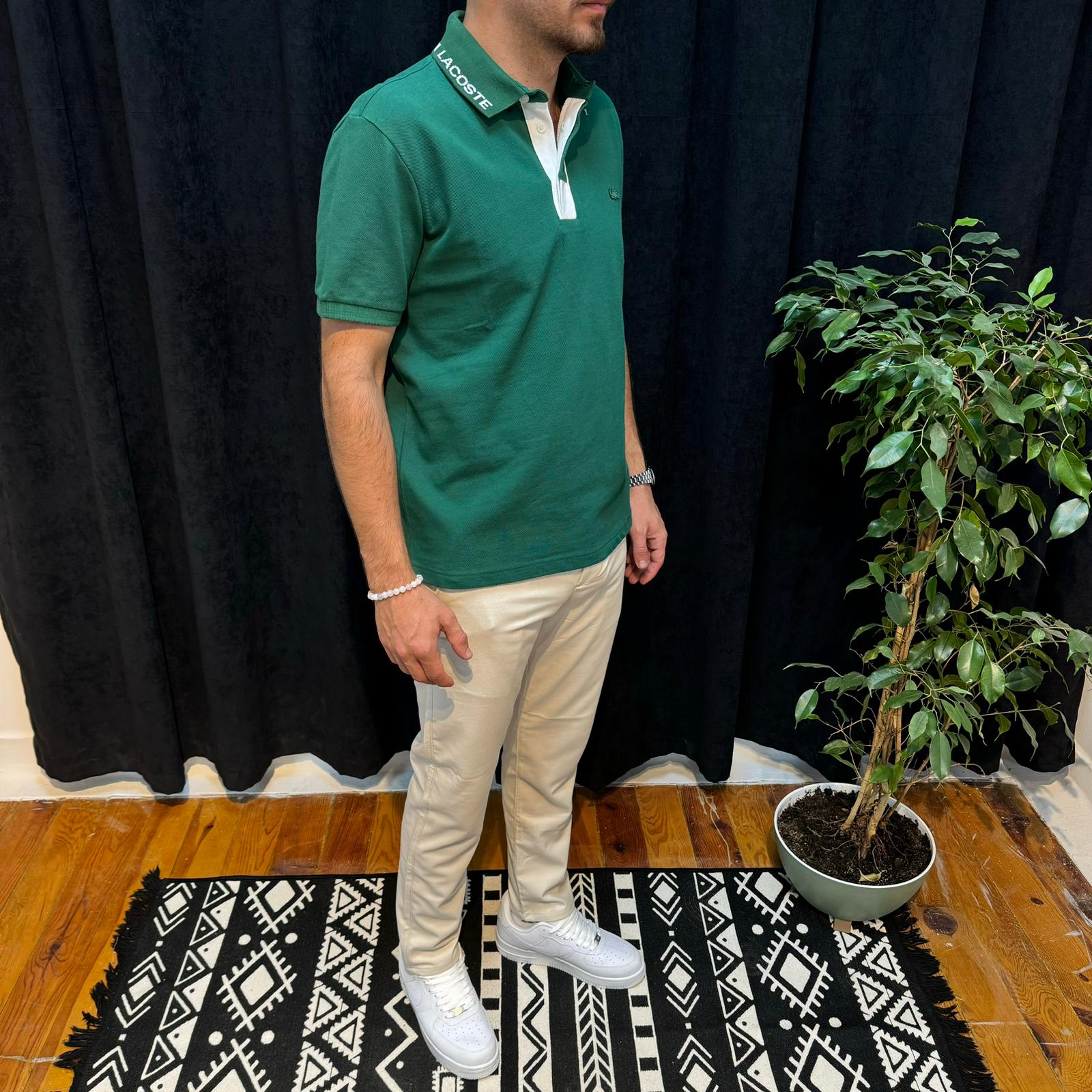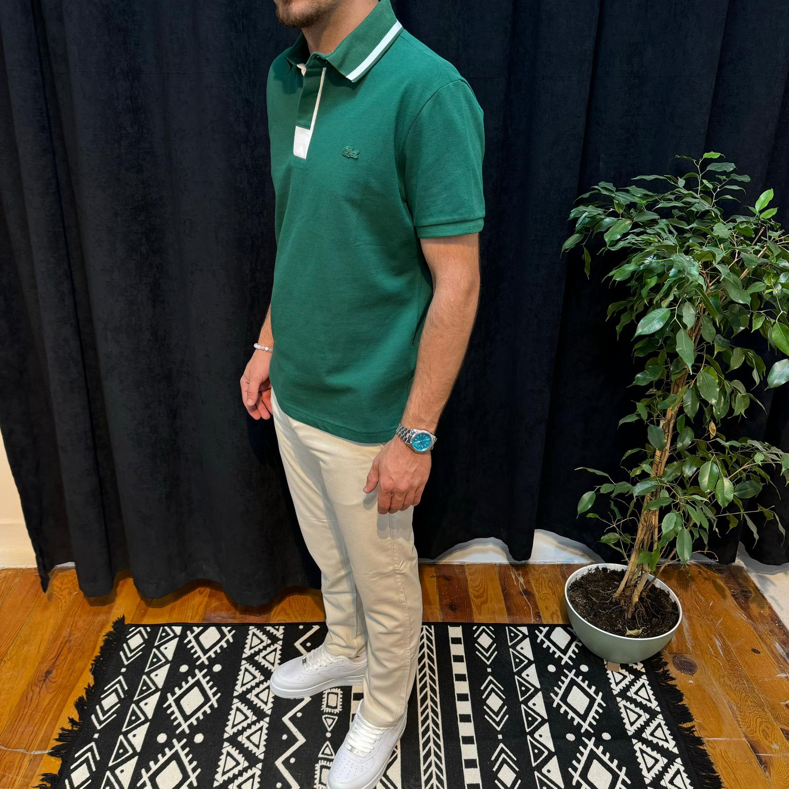 LC Premium Polo Yaka Beyaz Detay Tişört Yeşil