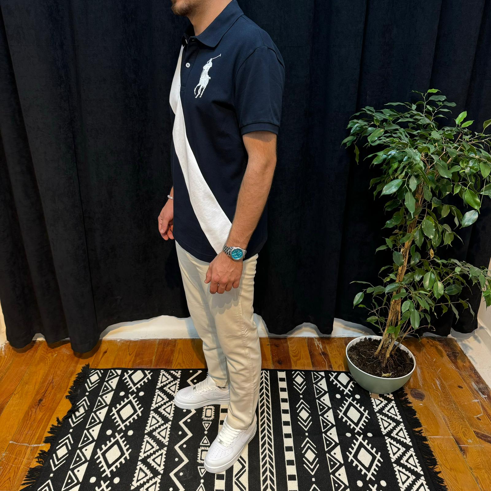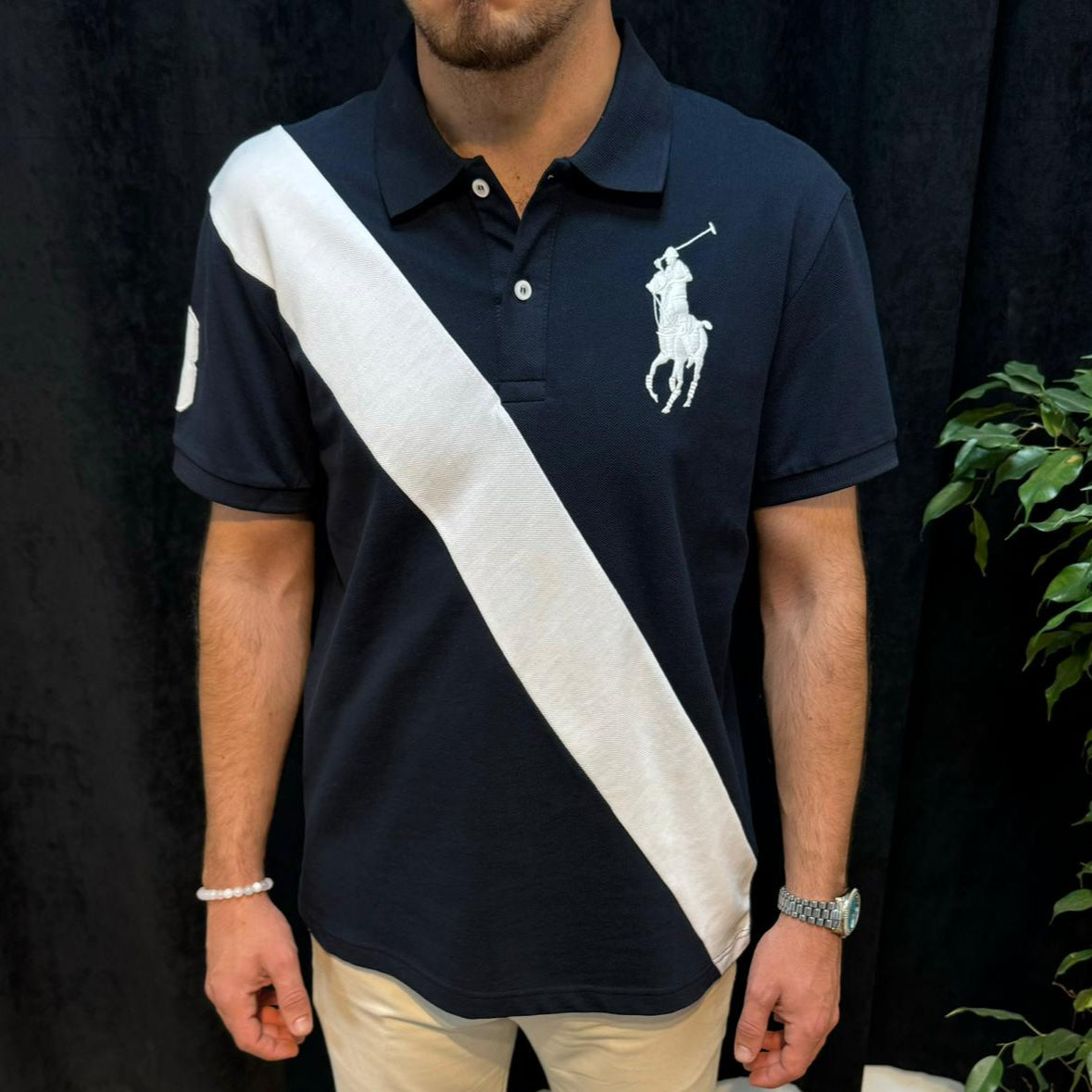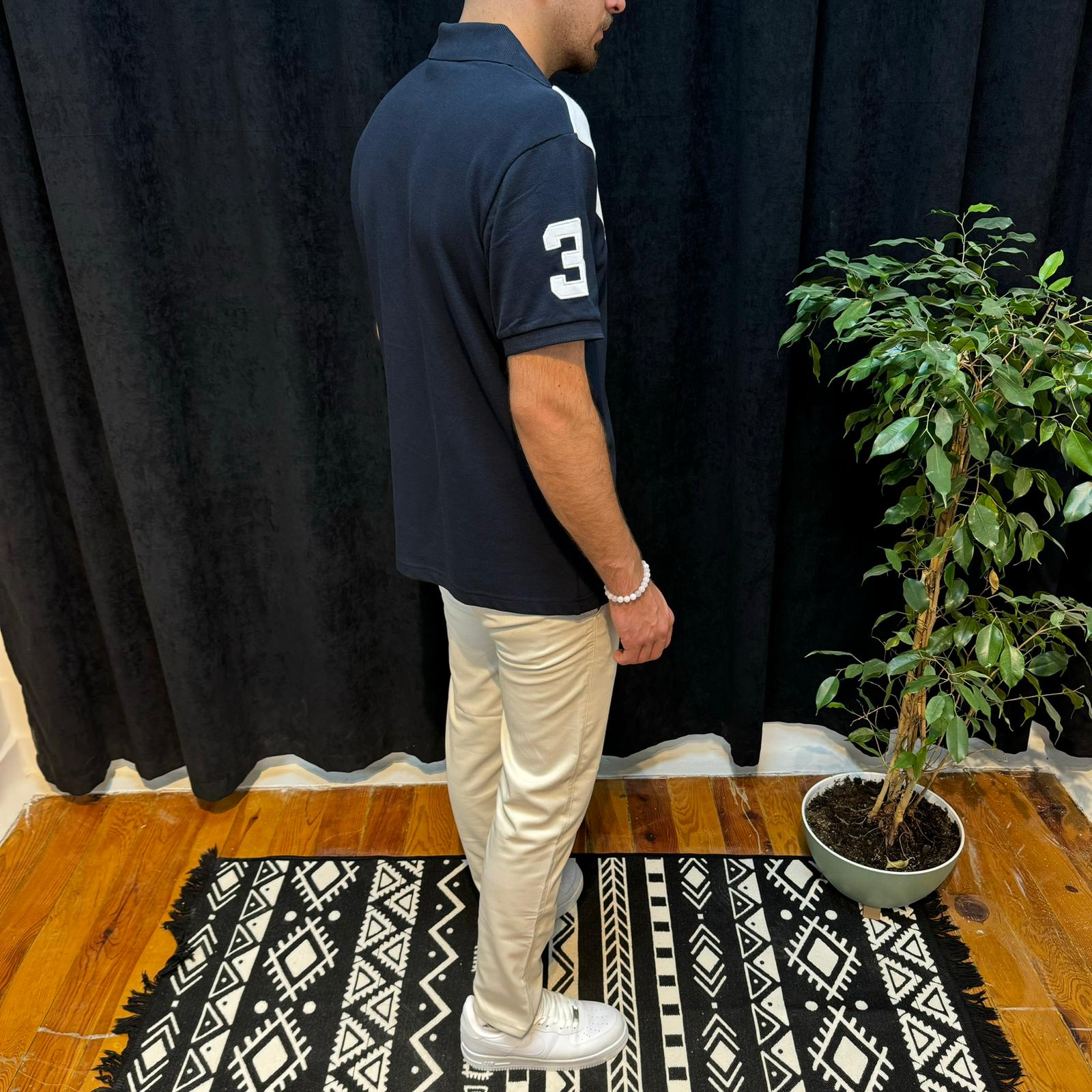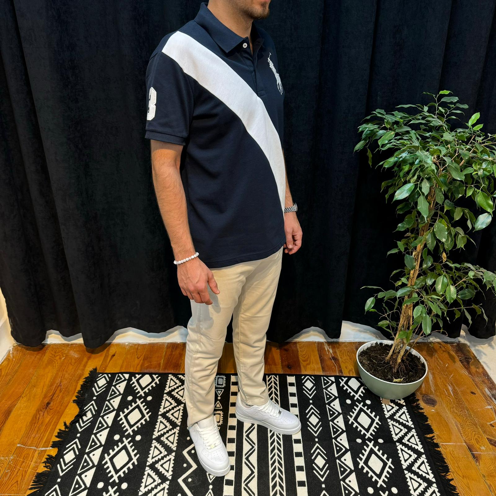 Polo Yaka Tişört Beyaz Detaylı Lacivert