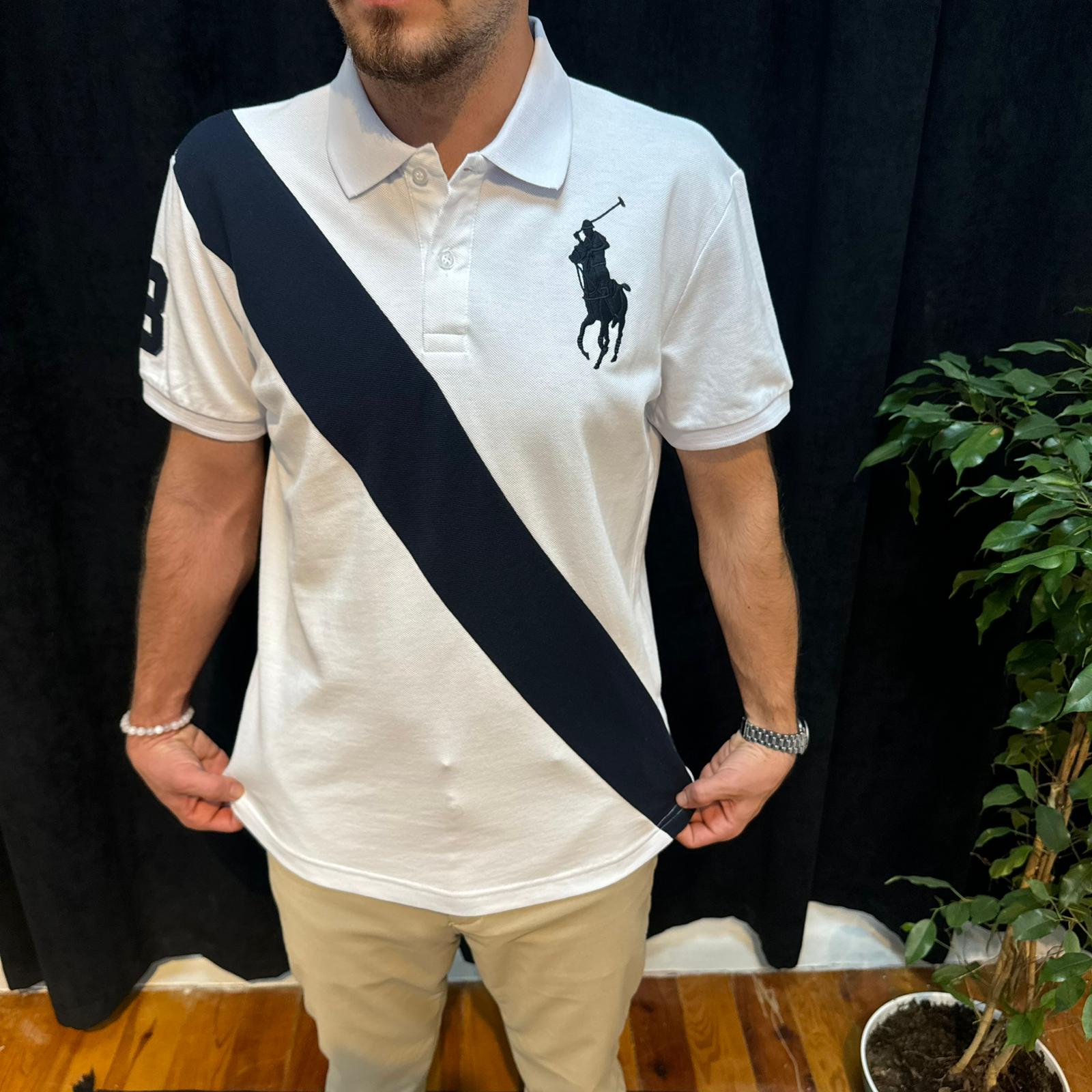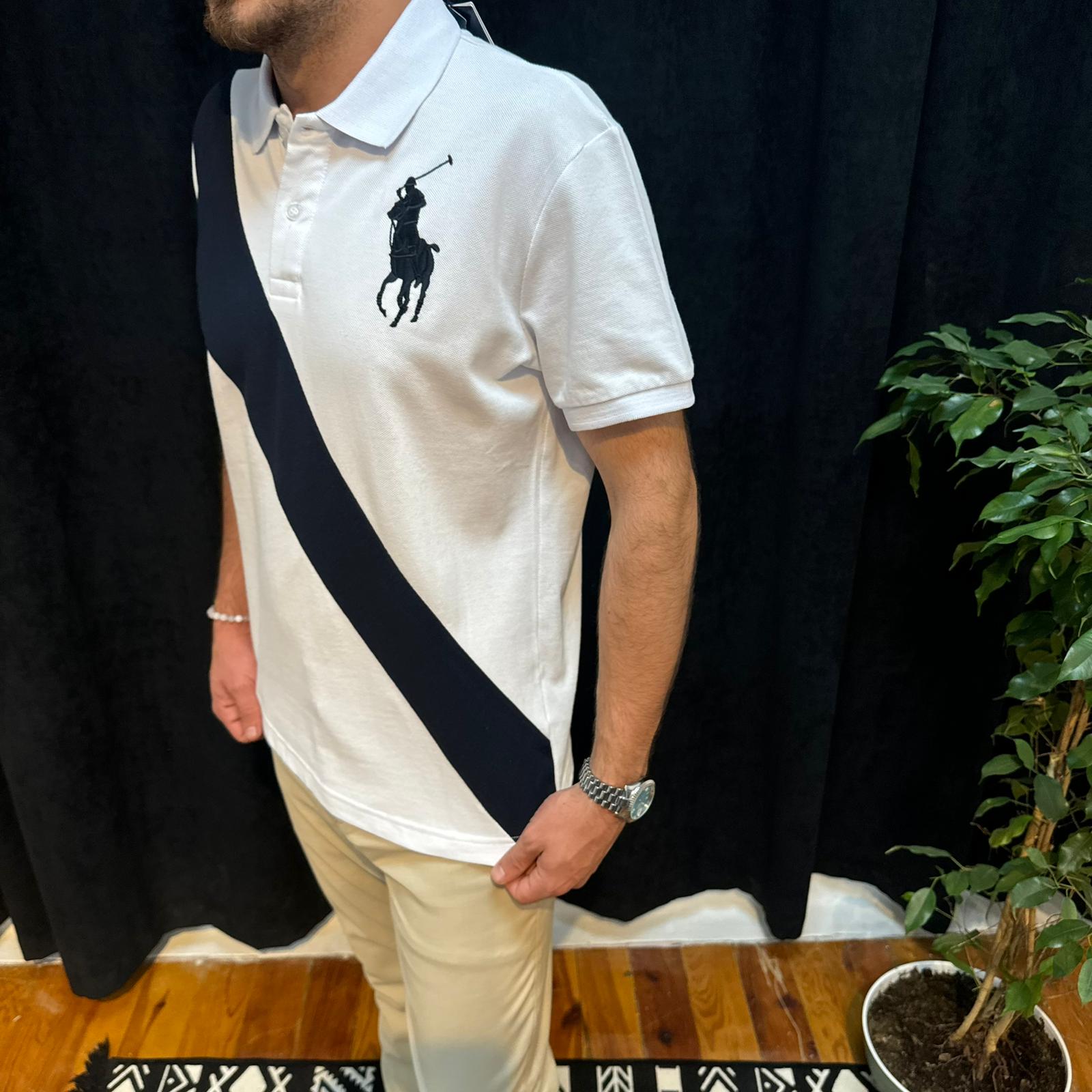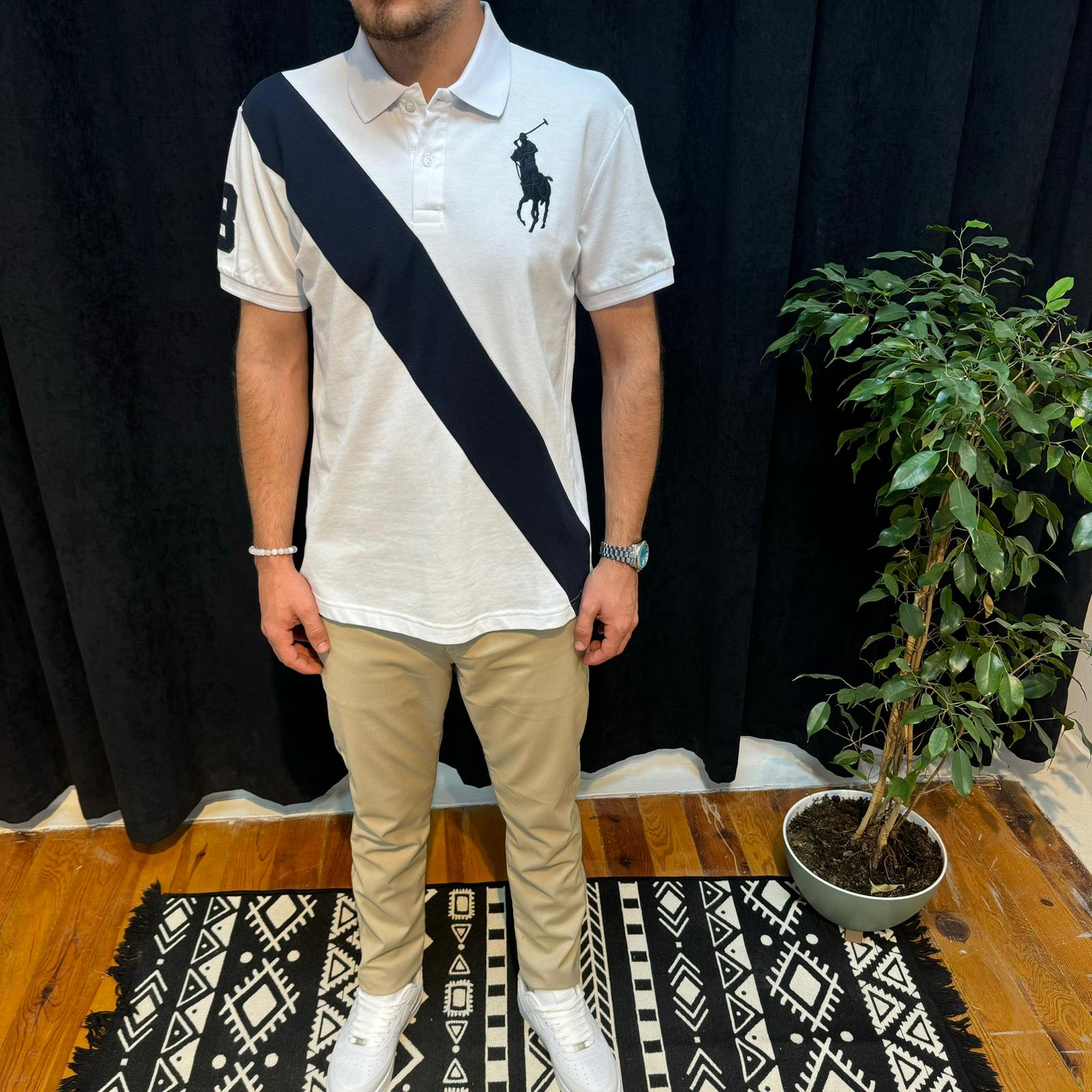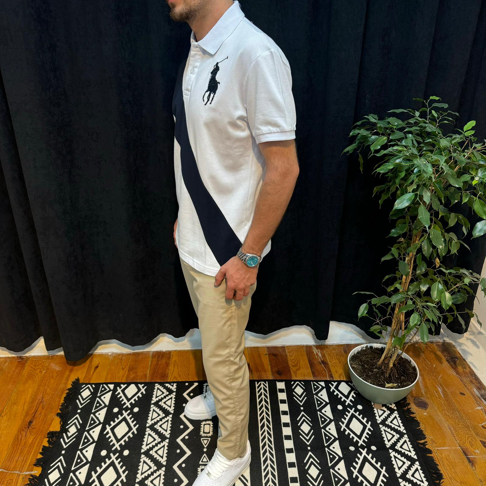 Polo Yaka Tişört Lacivert Detaylı Beyaz