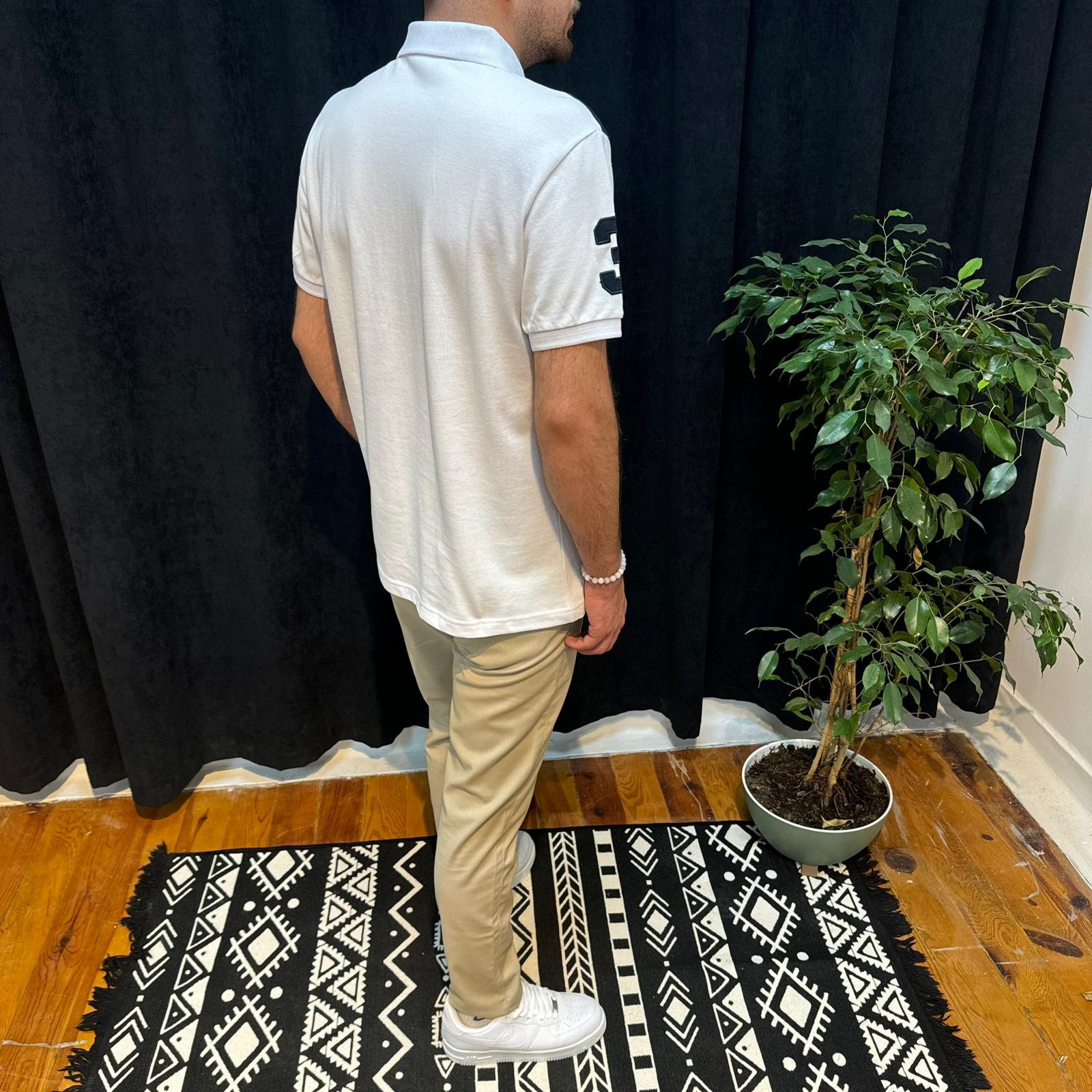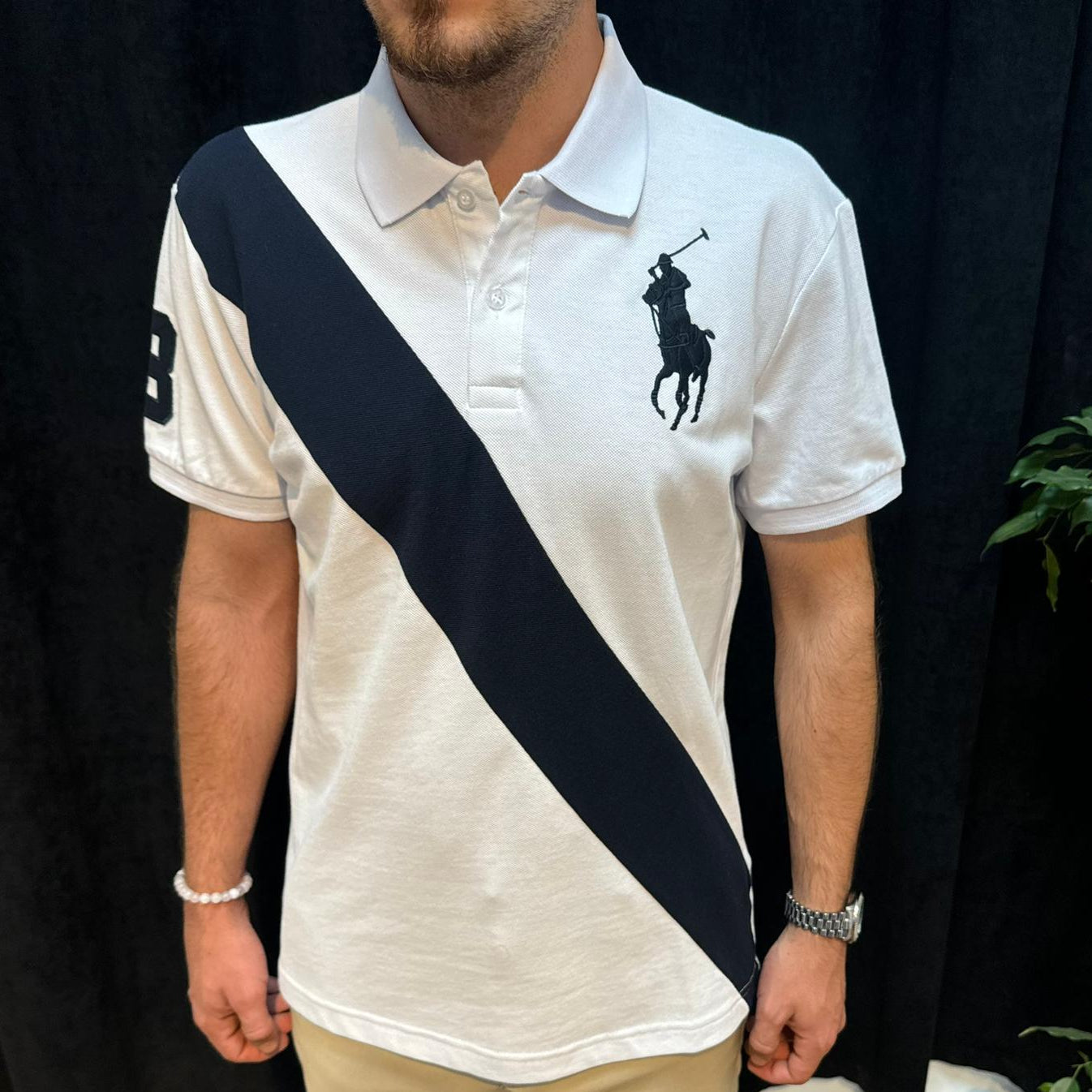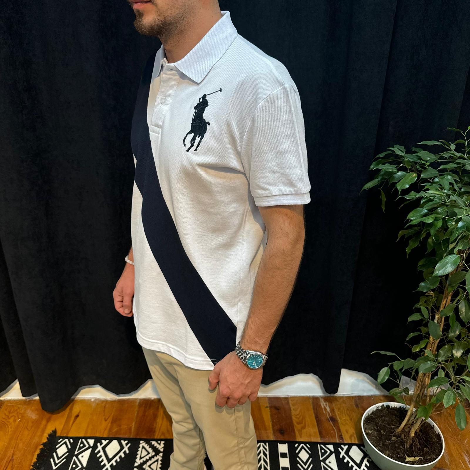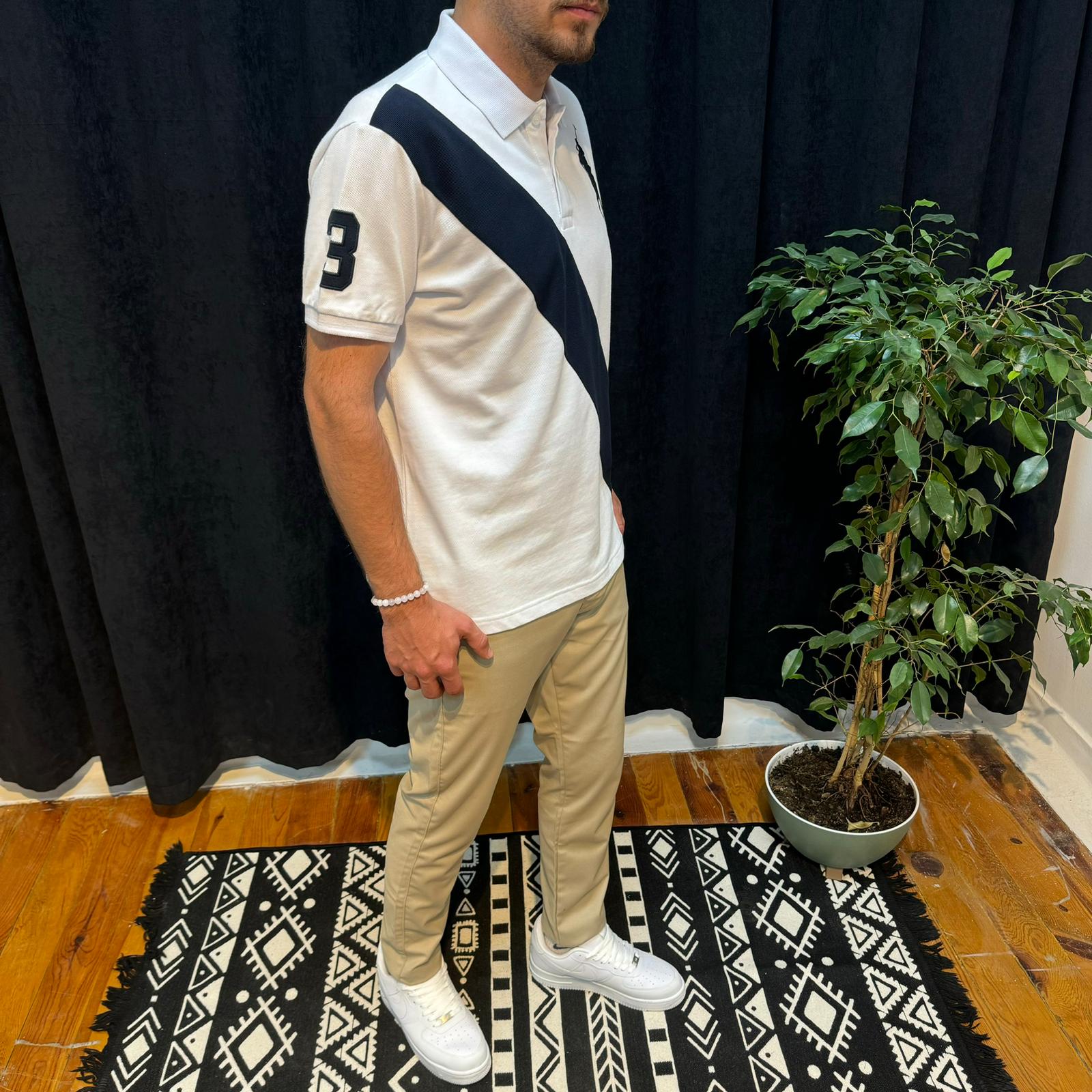 Polo Yaka Tişört Lacivert Detaylı Beyaz