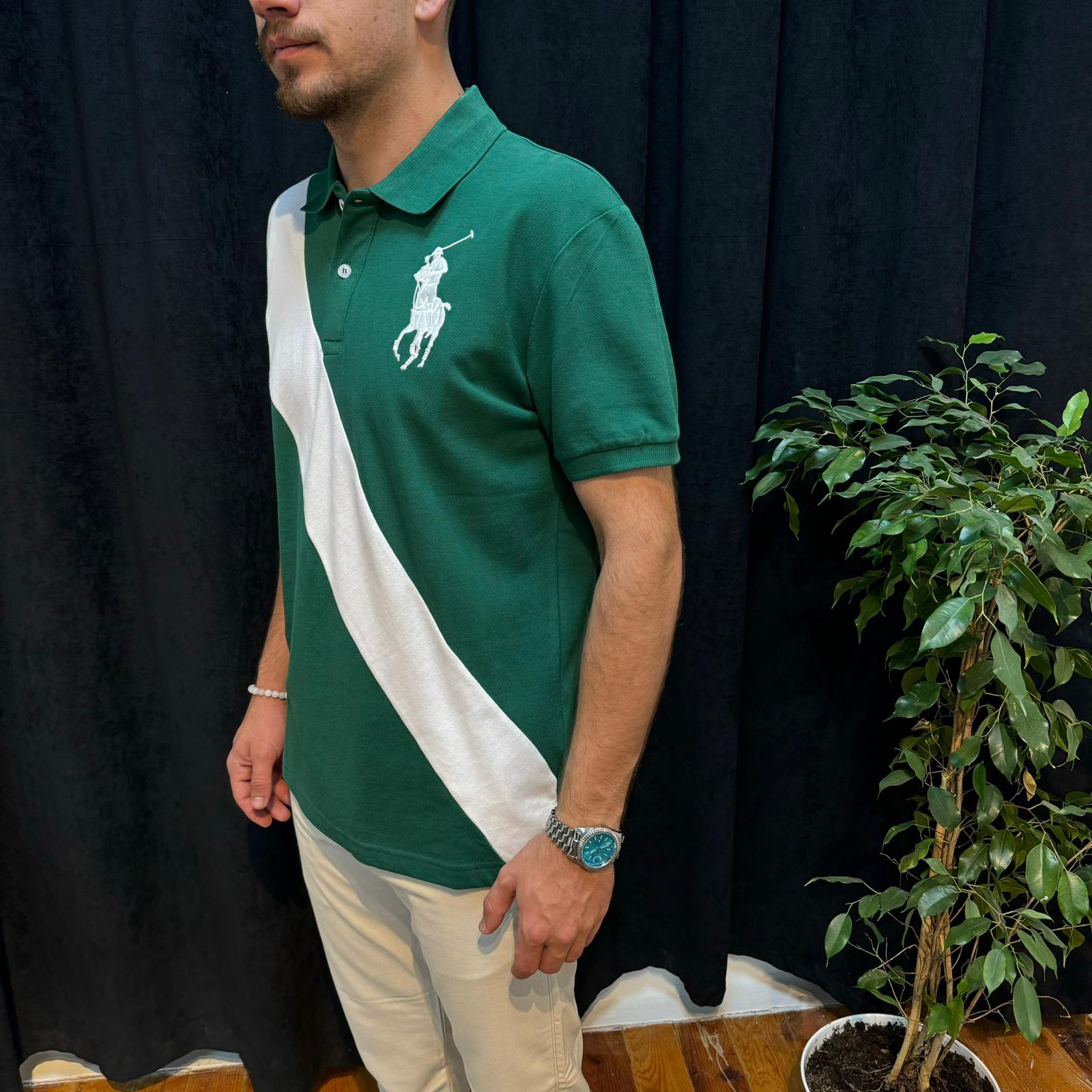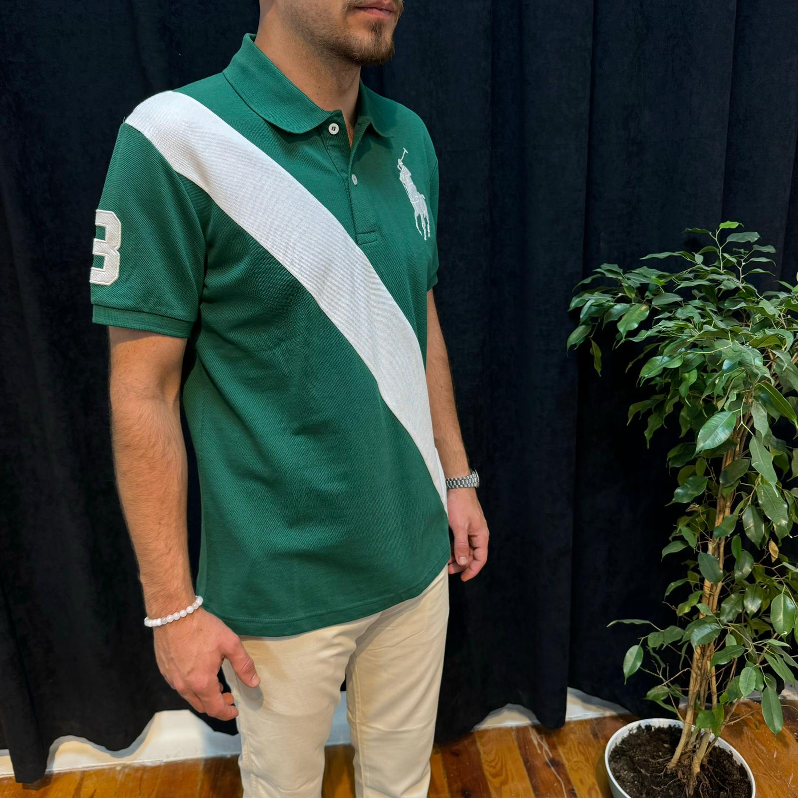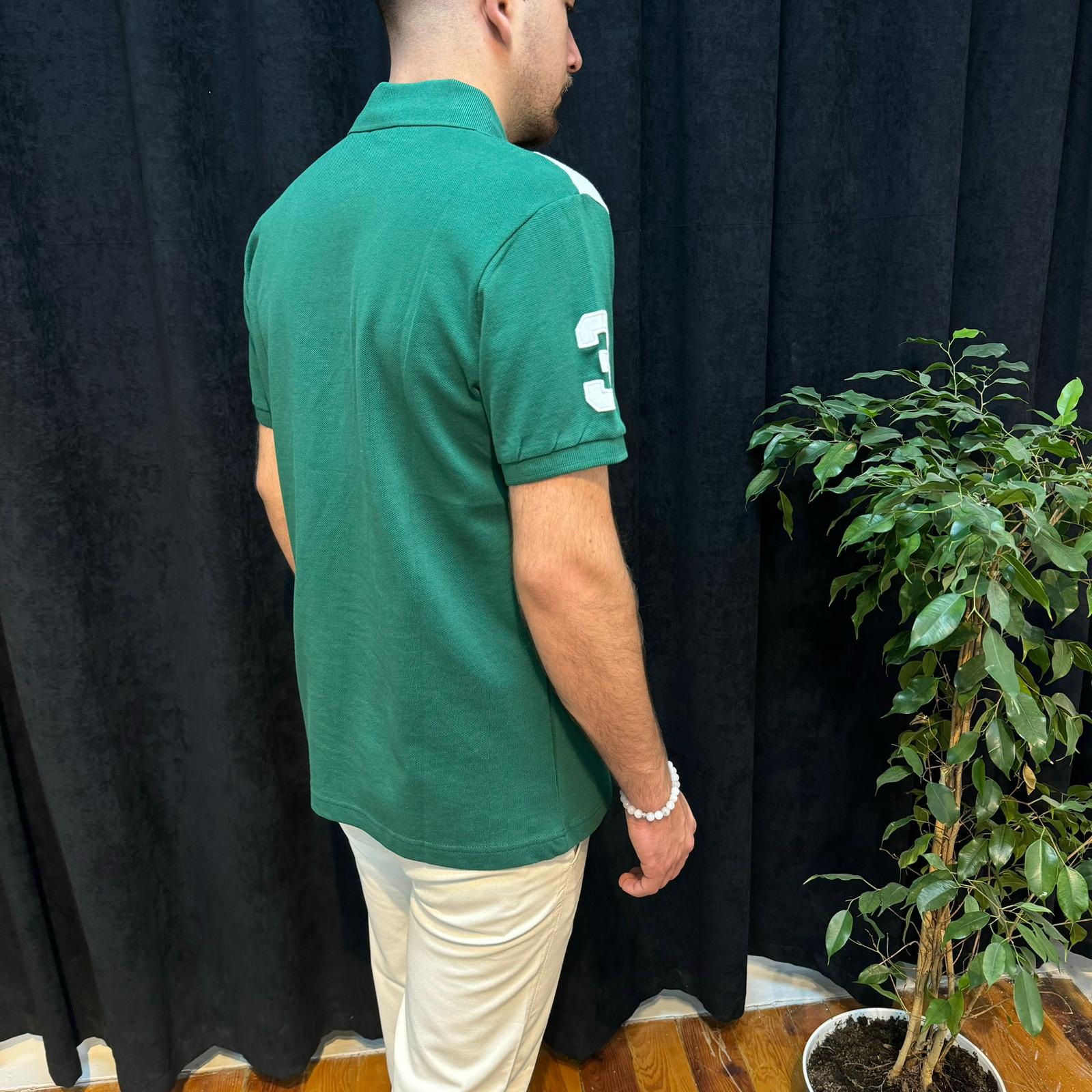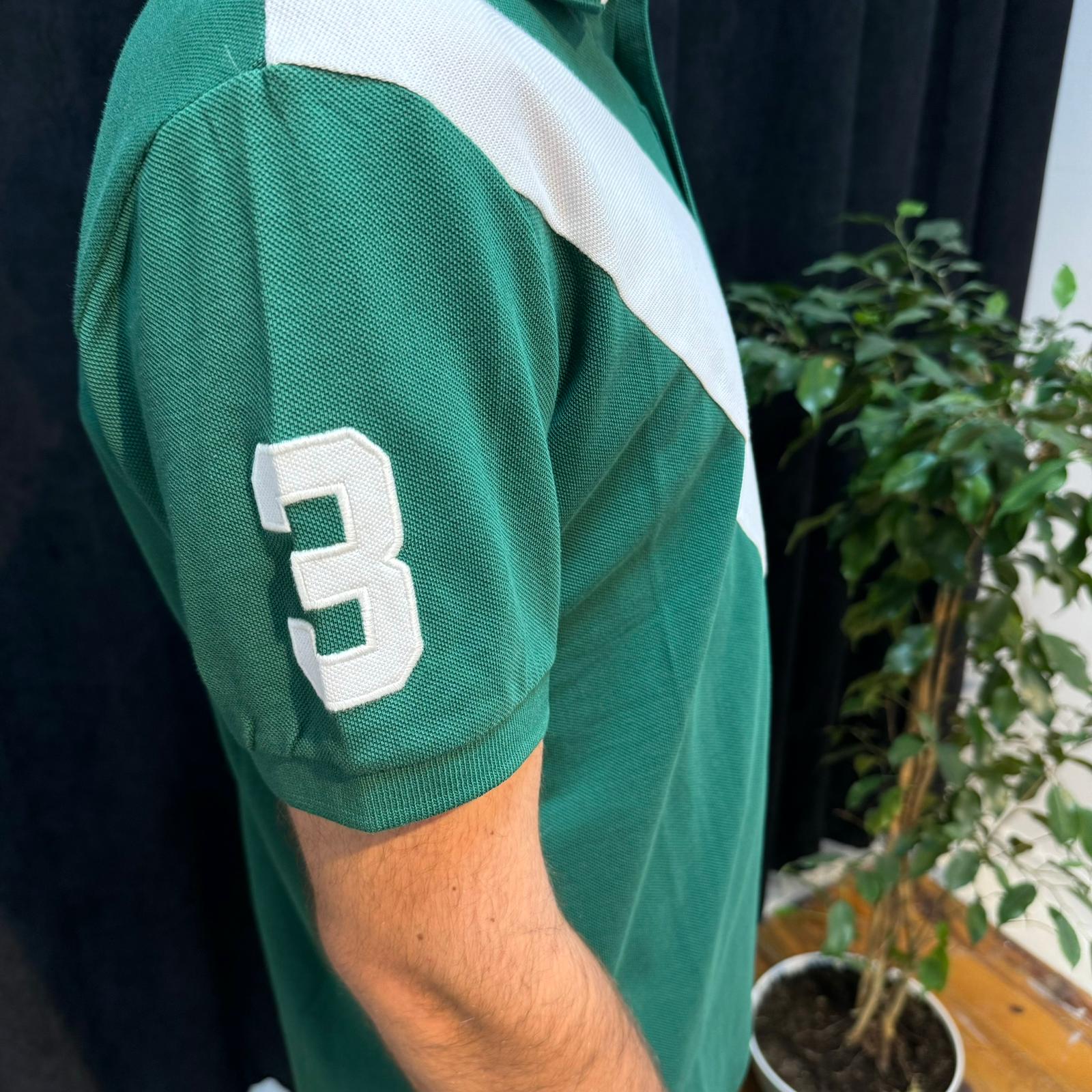 Polo Yaka Tişört Beyaz Detaylı Yeşil