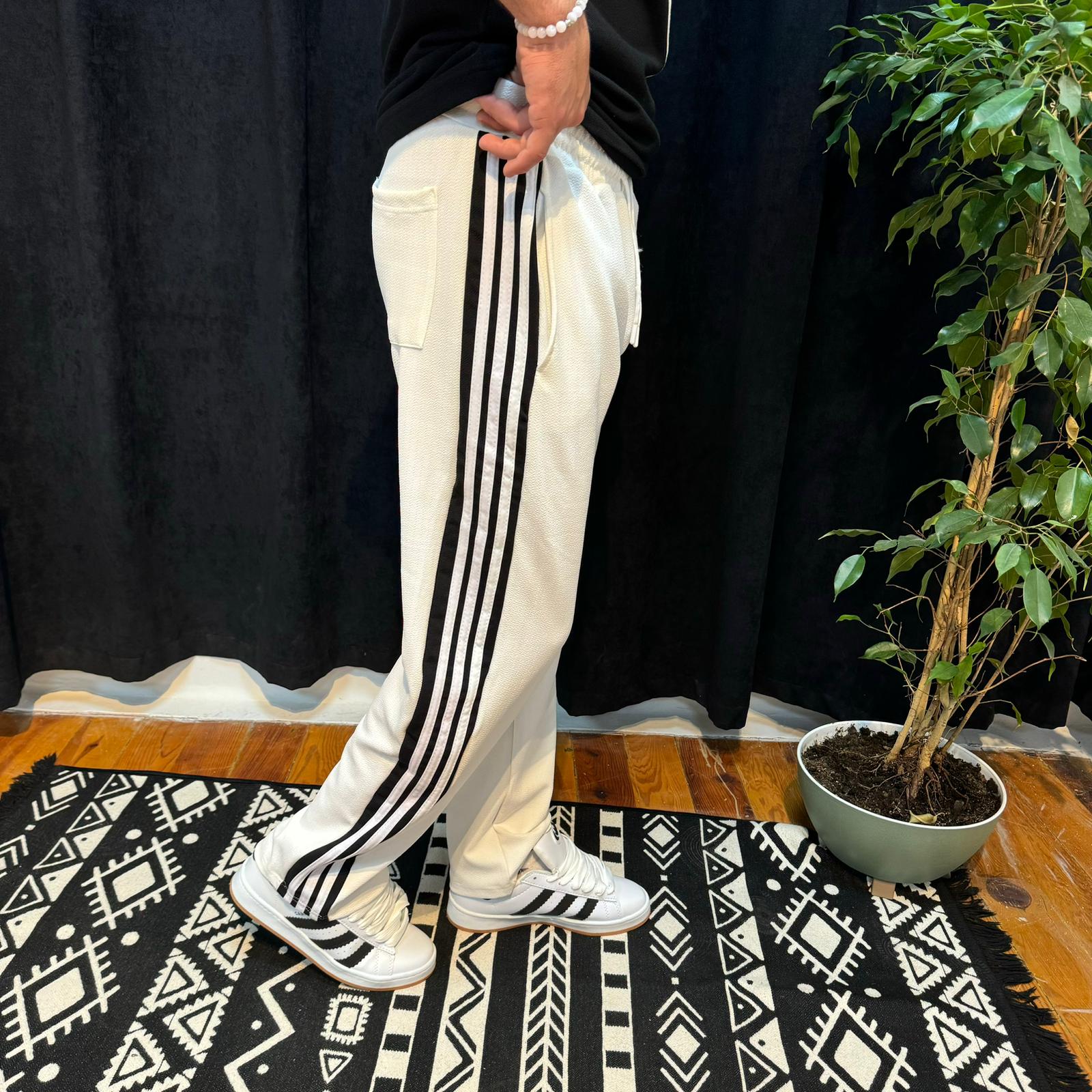 Siyah Şeritli Eşofman Altı Beyaz