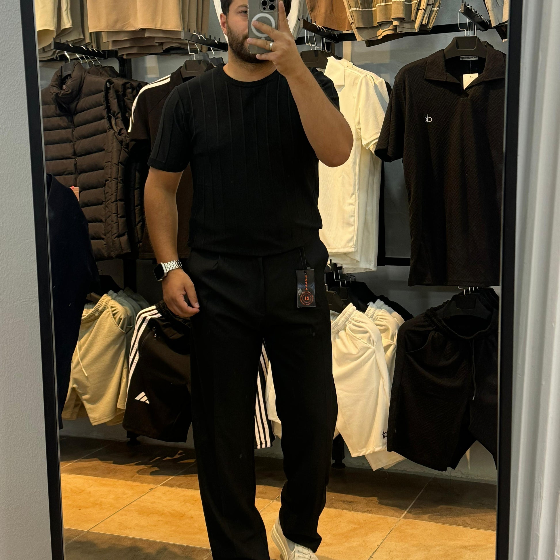 Pileli Triko Tişört Siyah